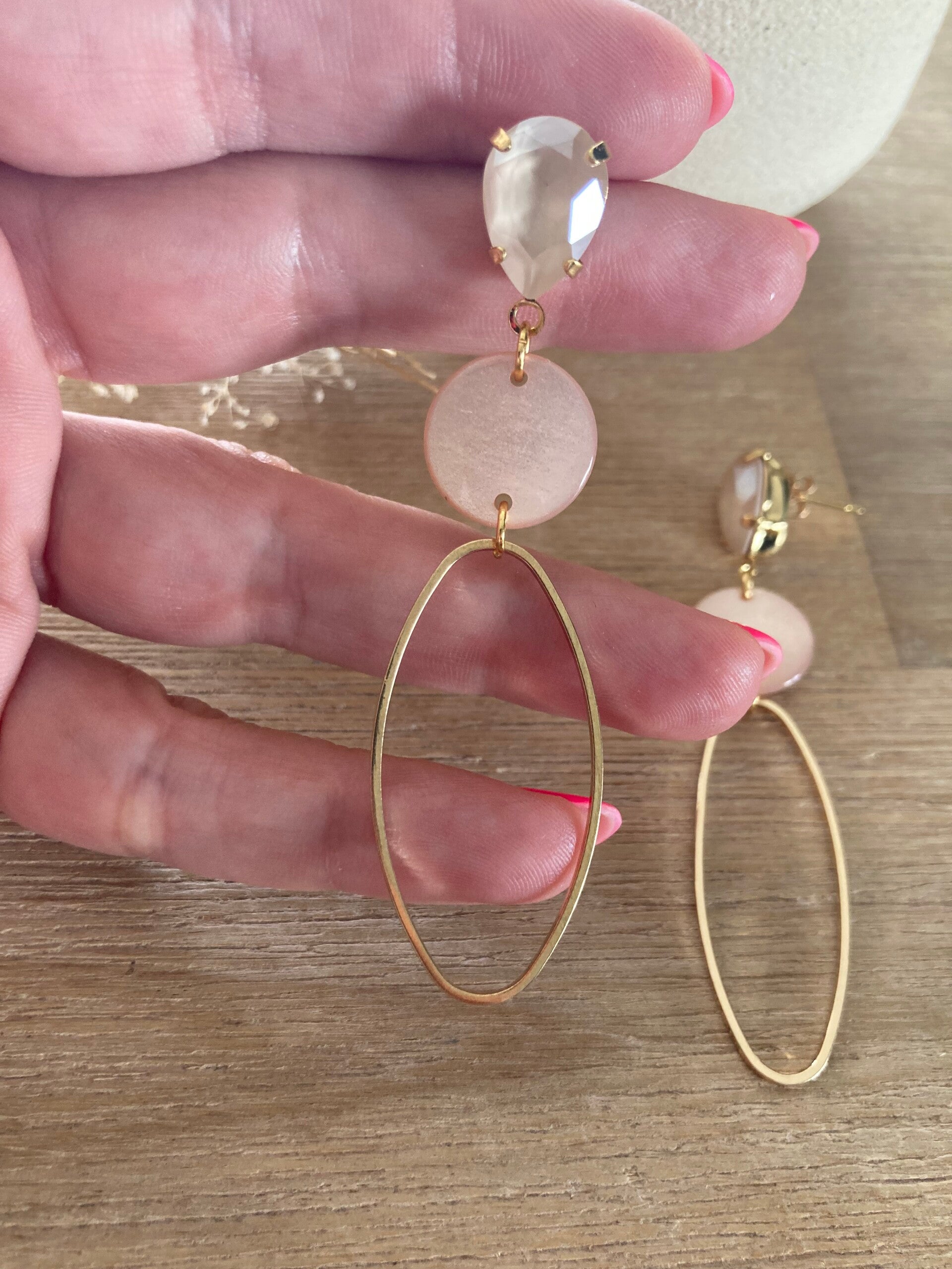 Afgewerkt met een goudkleurige kwaliteitsvolle oorsteker bezet met een beige peervormige Swarovskisteen.