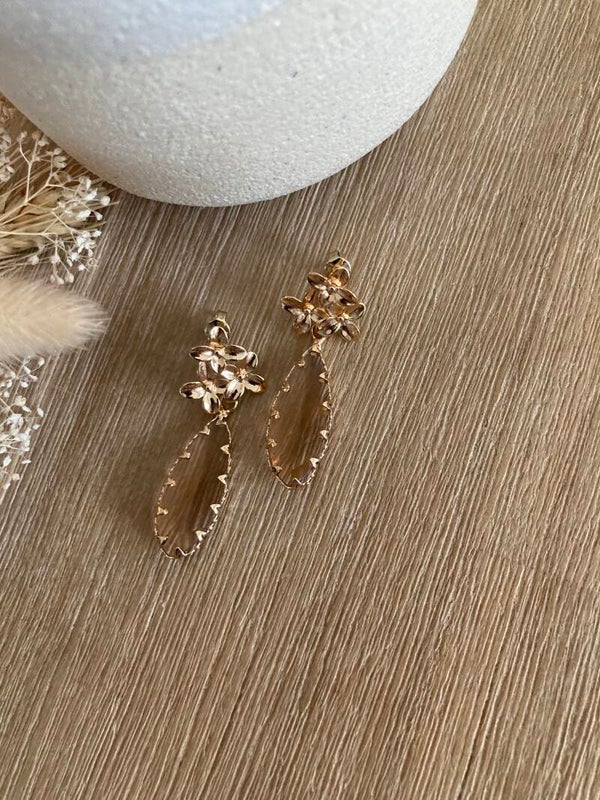 Afgewerkt met een prachtige 18K gold plated oorsteker en een crystal hanger als onderstuk.