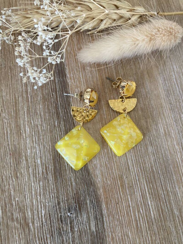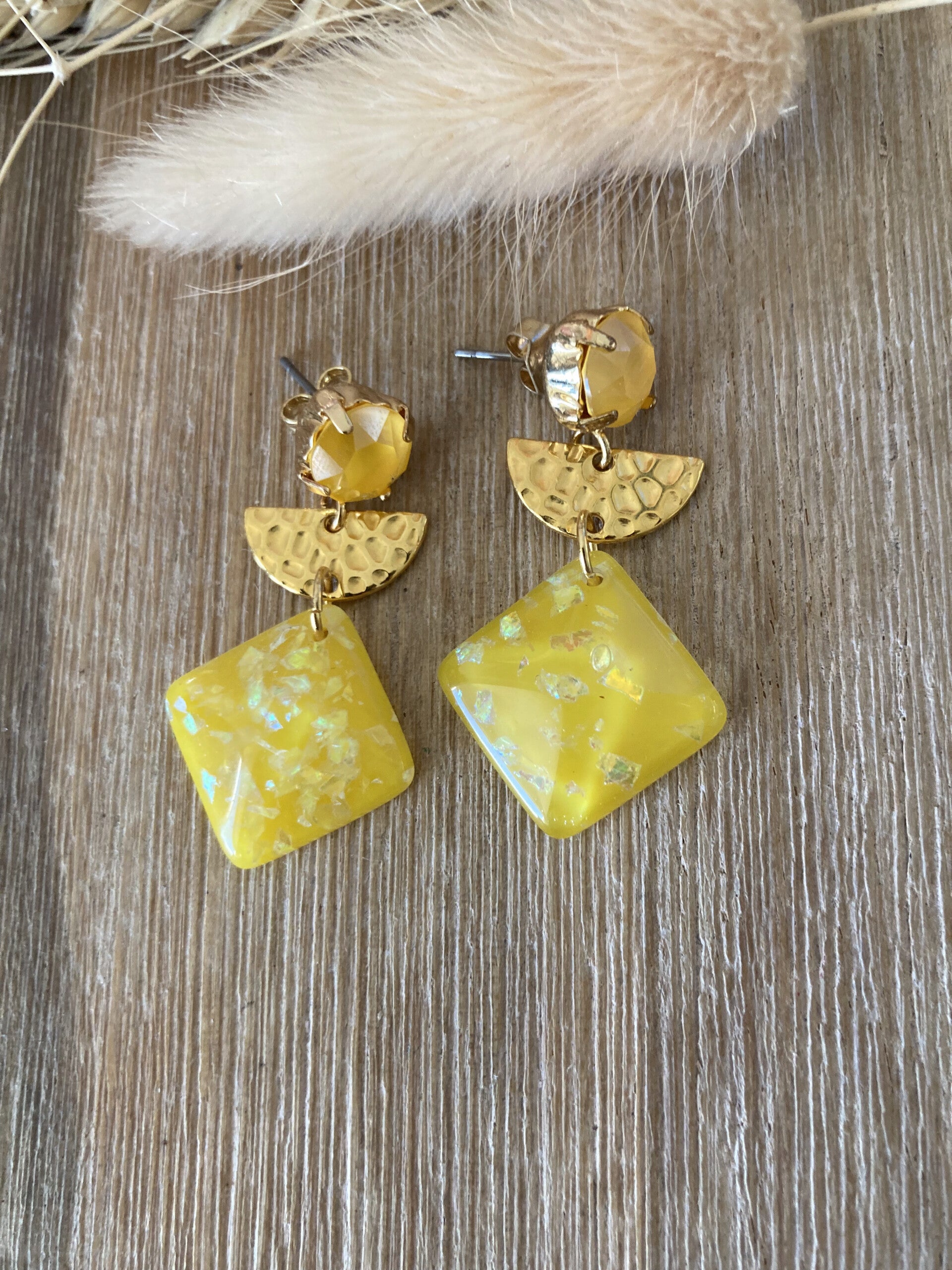 Oorsteker is van designer quality metaal, is nikkelvrij en gold plated. Hierin zit een groot geel Swarovskisteentje.