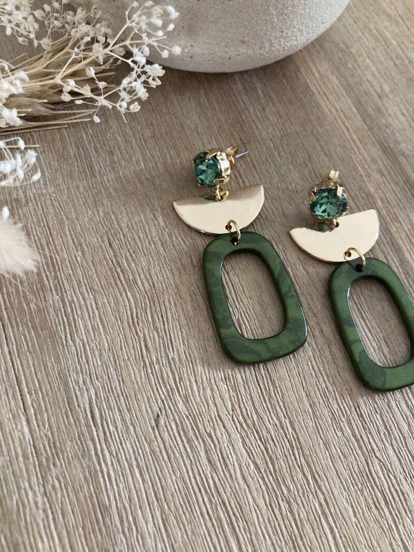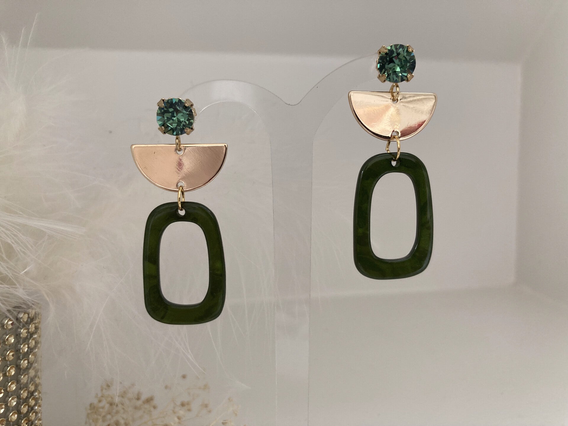 Afgewerkt met een goudkleurige designer kwaliteitsvolle oorsteker bezet met een groene Swarovskisteen.