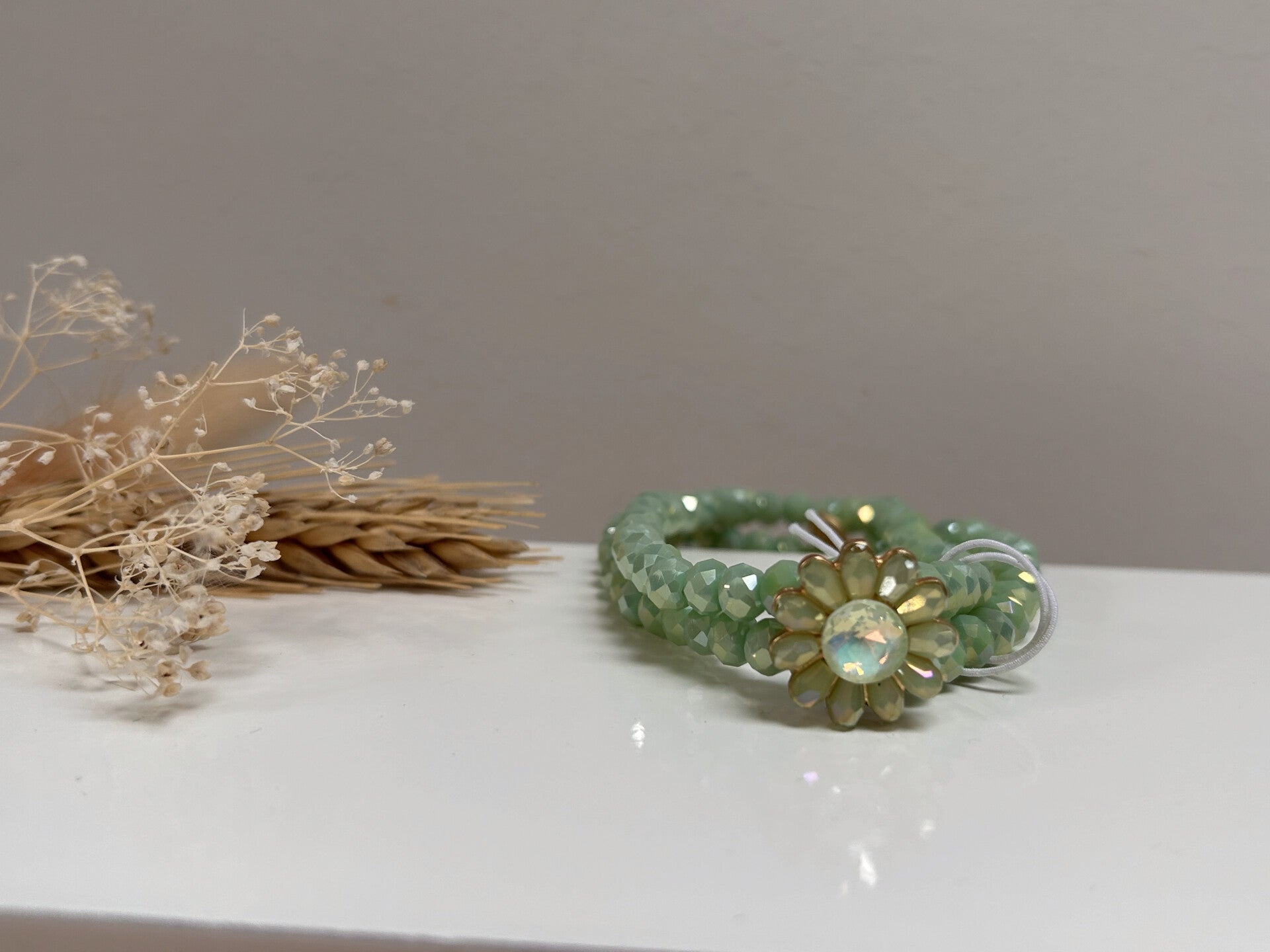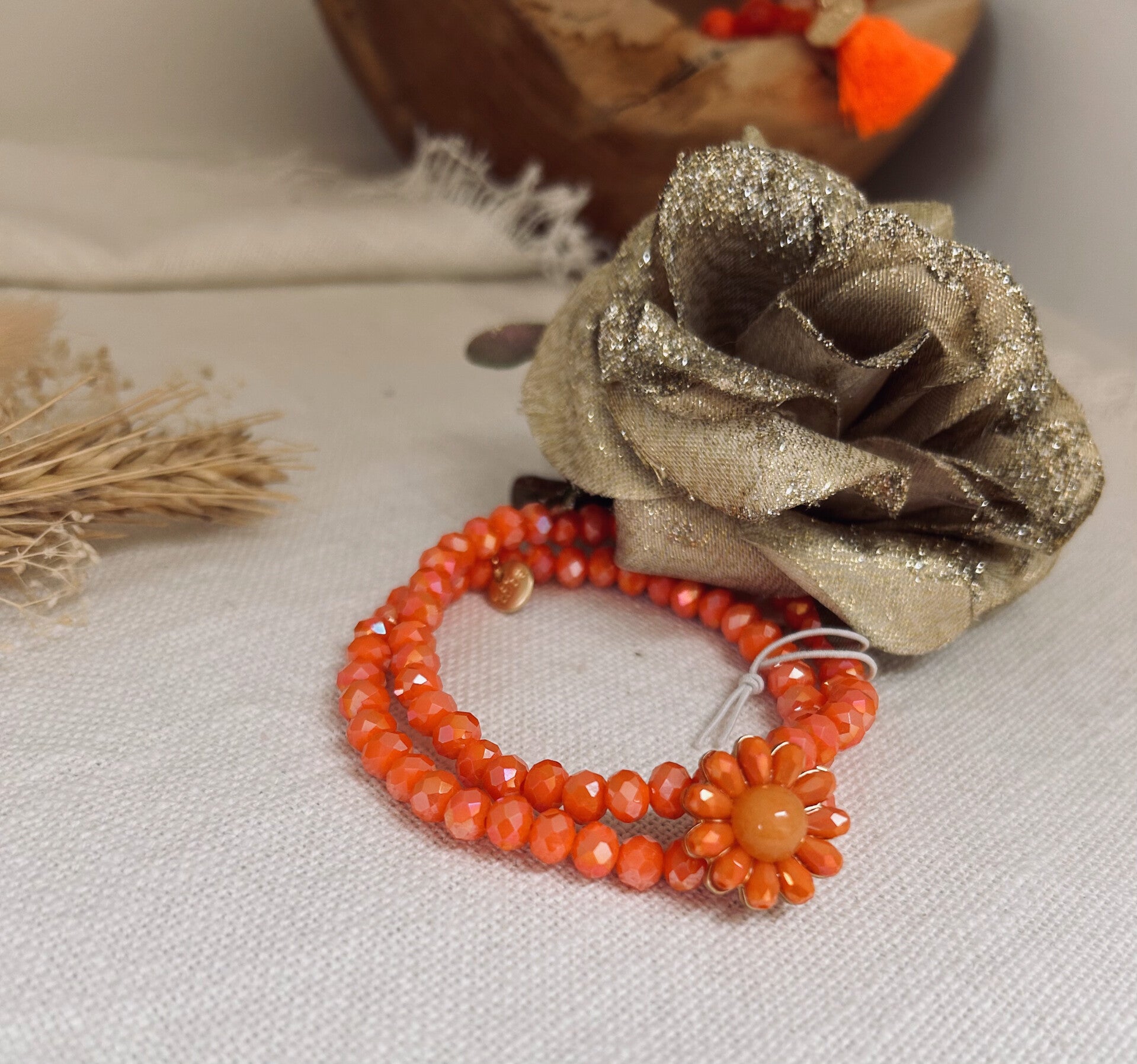 Mooie rekbare armbandenset in groen of oranje.
