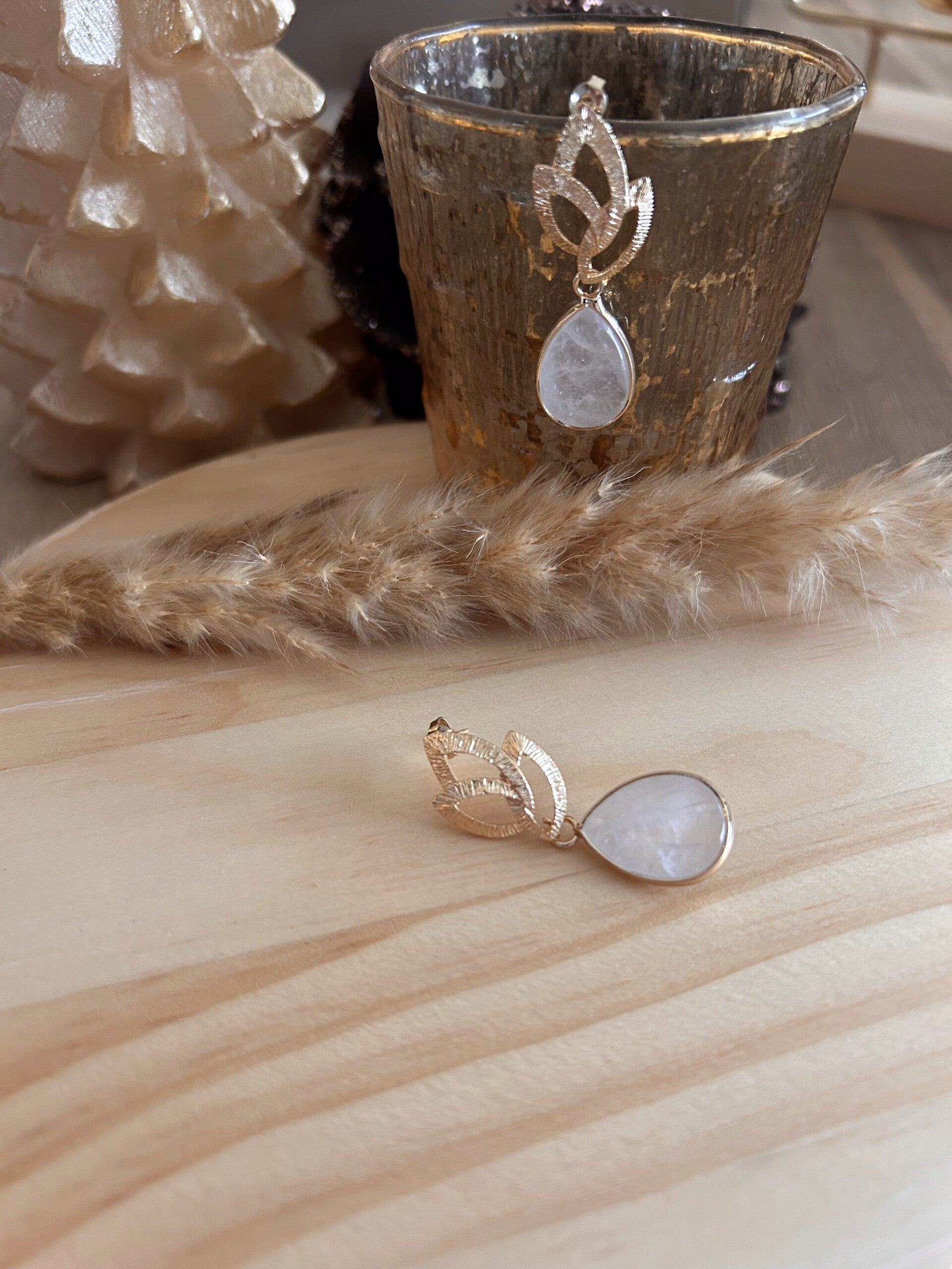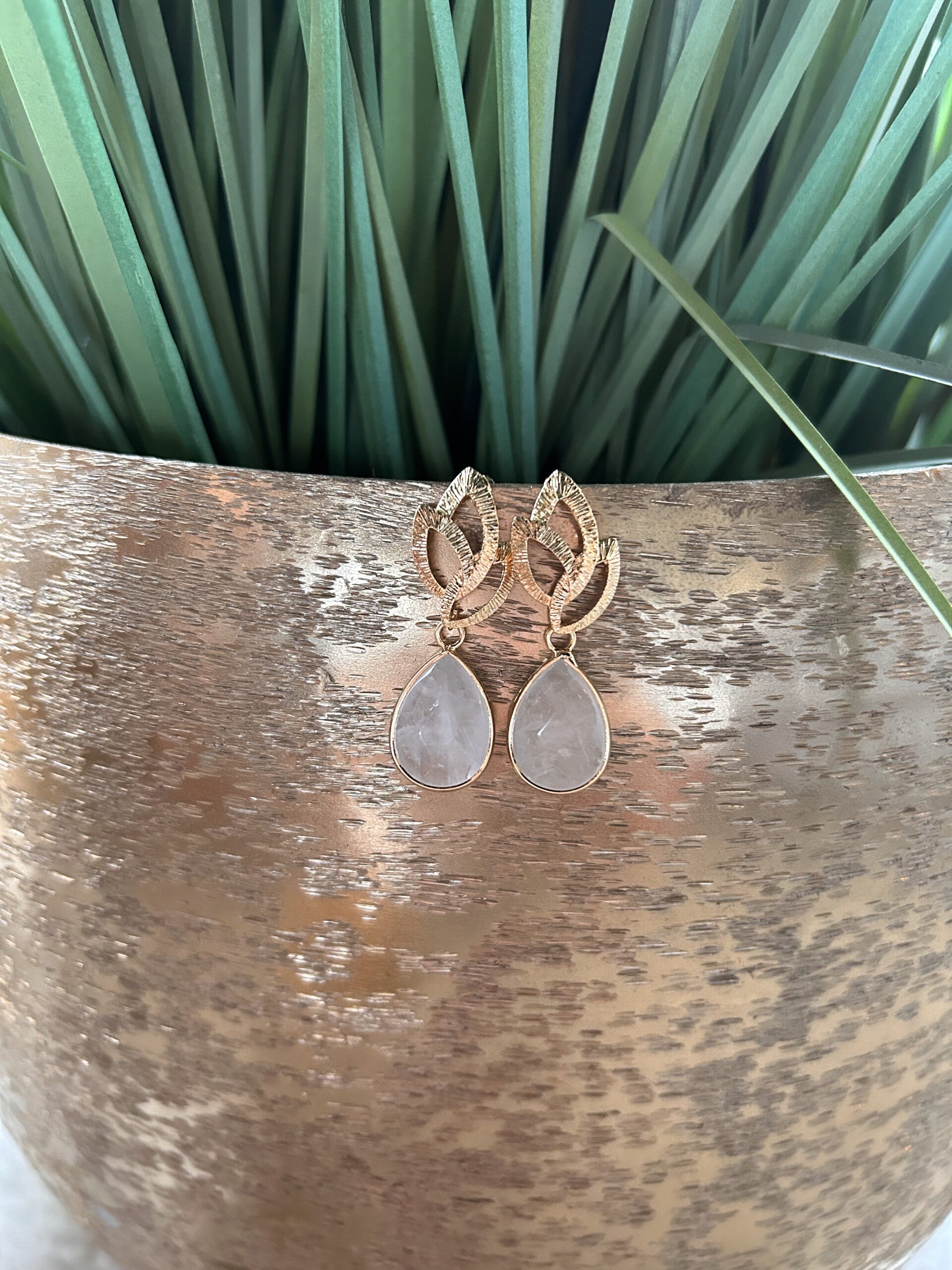 Afgewerkt met goudkleurige kwaliteitsvolle oorstekers verguld met 18K goud.