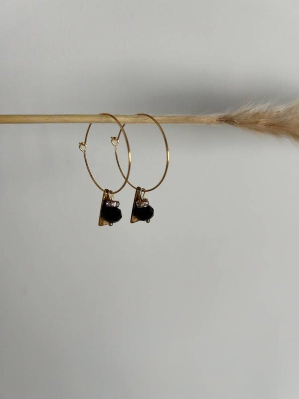 Je kan de oorbellen op verschillende manieren dragen: alleen de creool, de creool met het driehoekje, de creool met het facethangertje of alles samen.