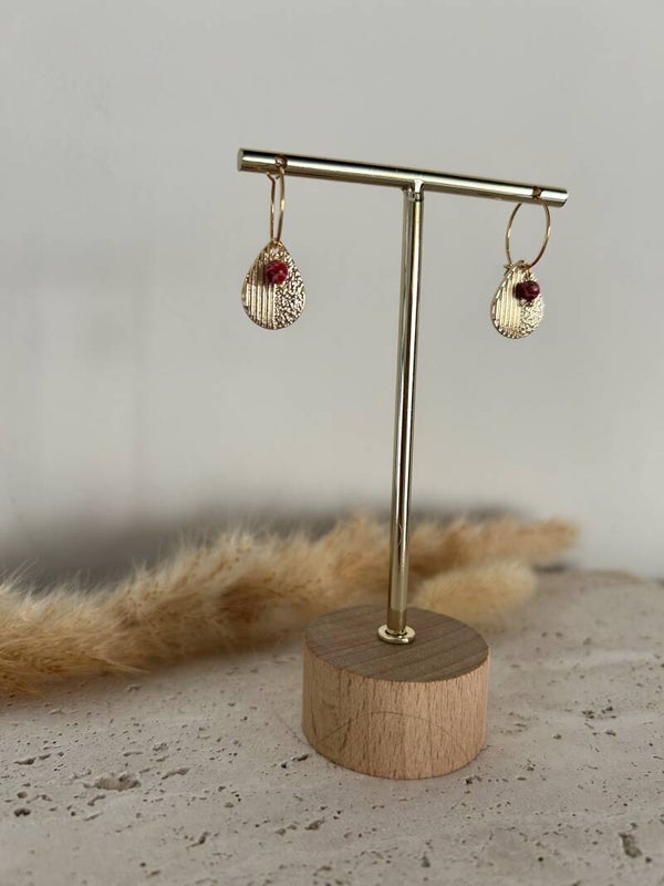 Vervaardigd uit metaal en afgewerkt met een natuursteentje.