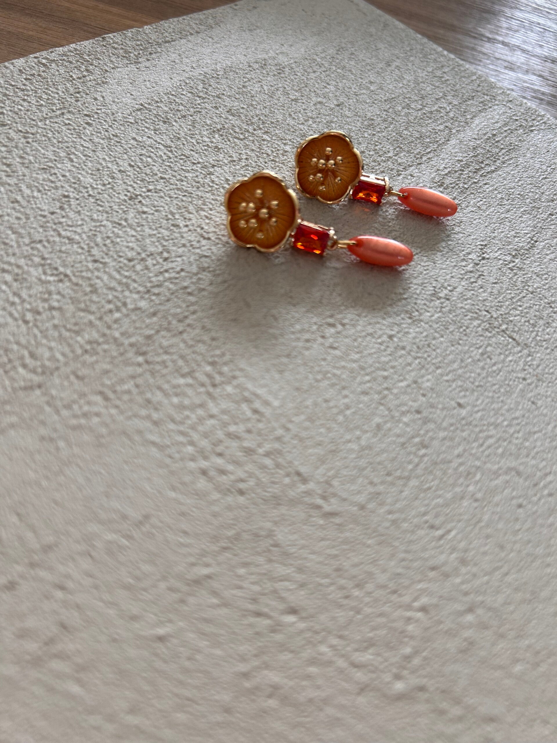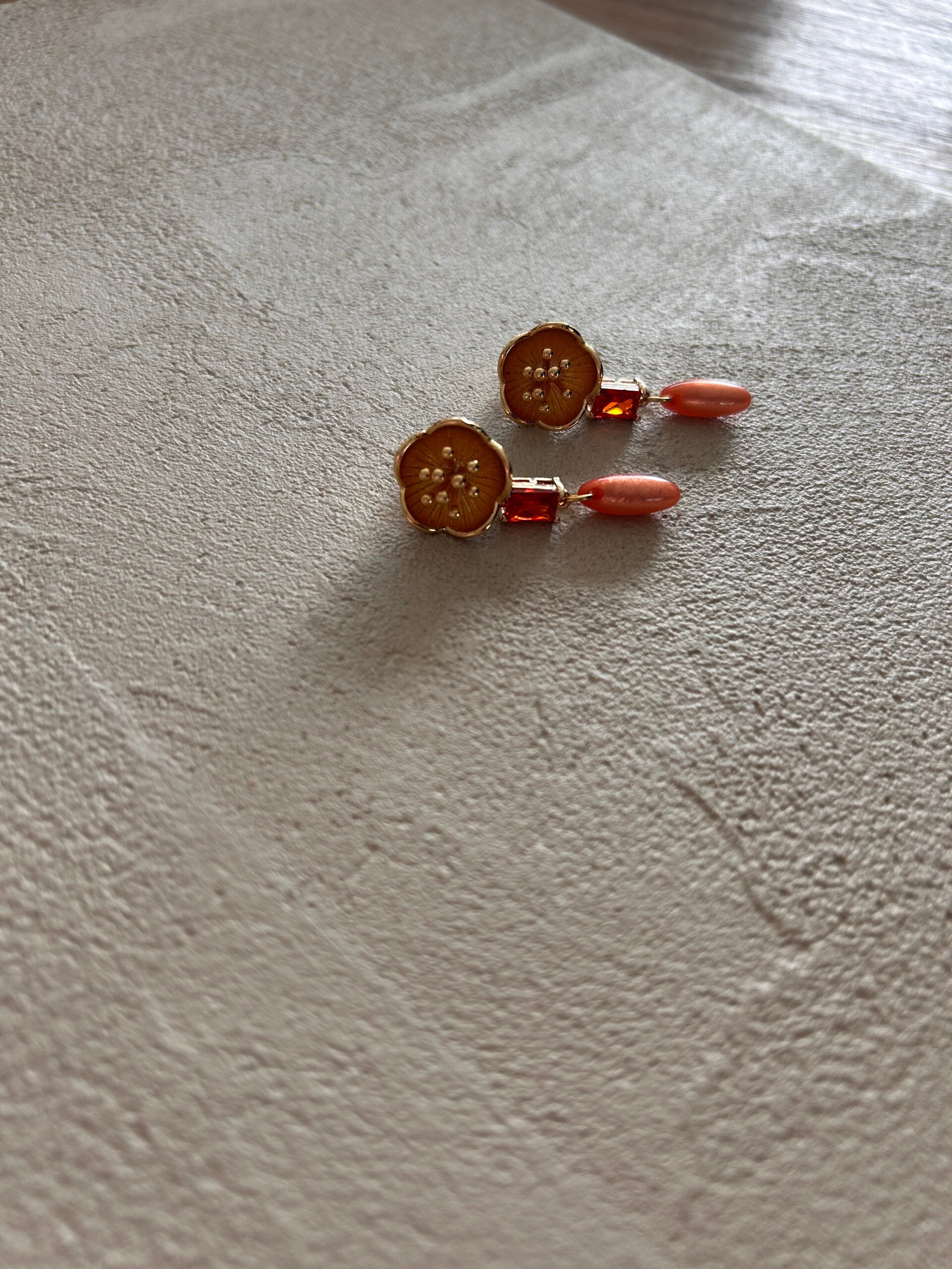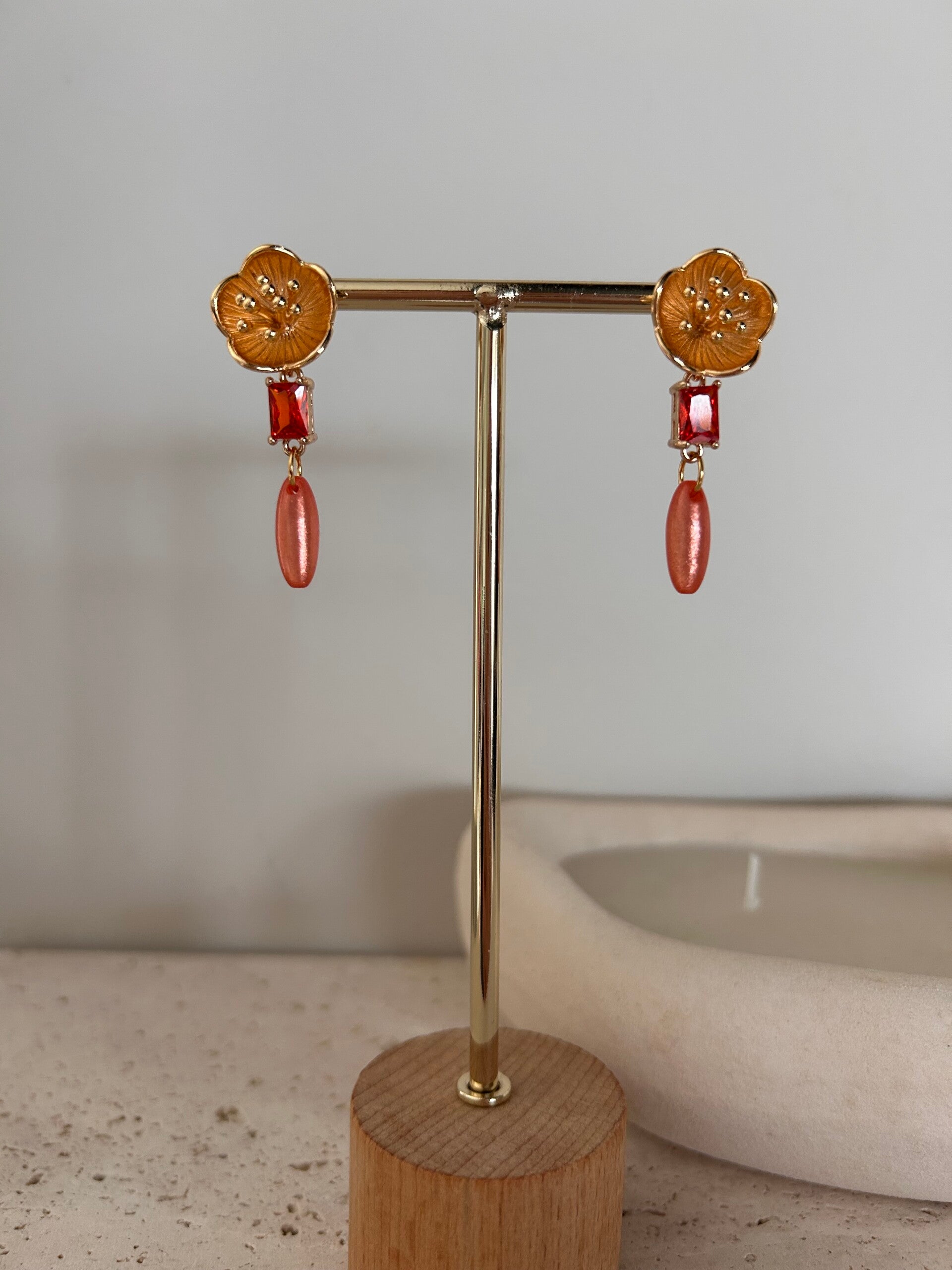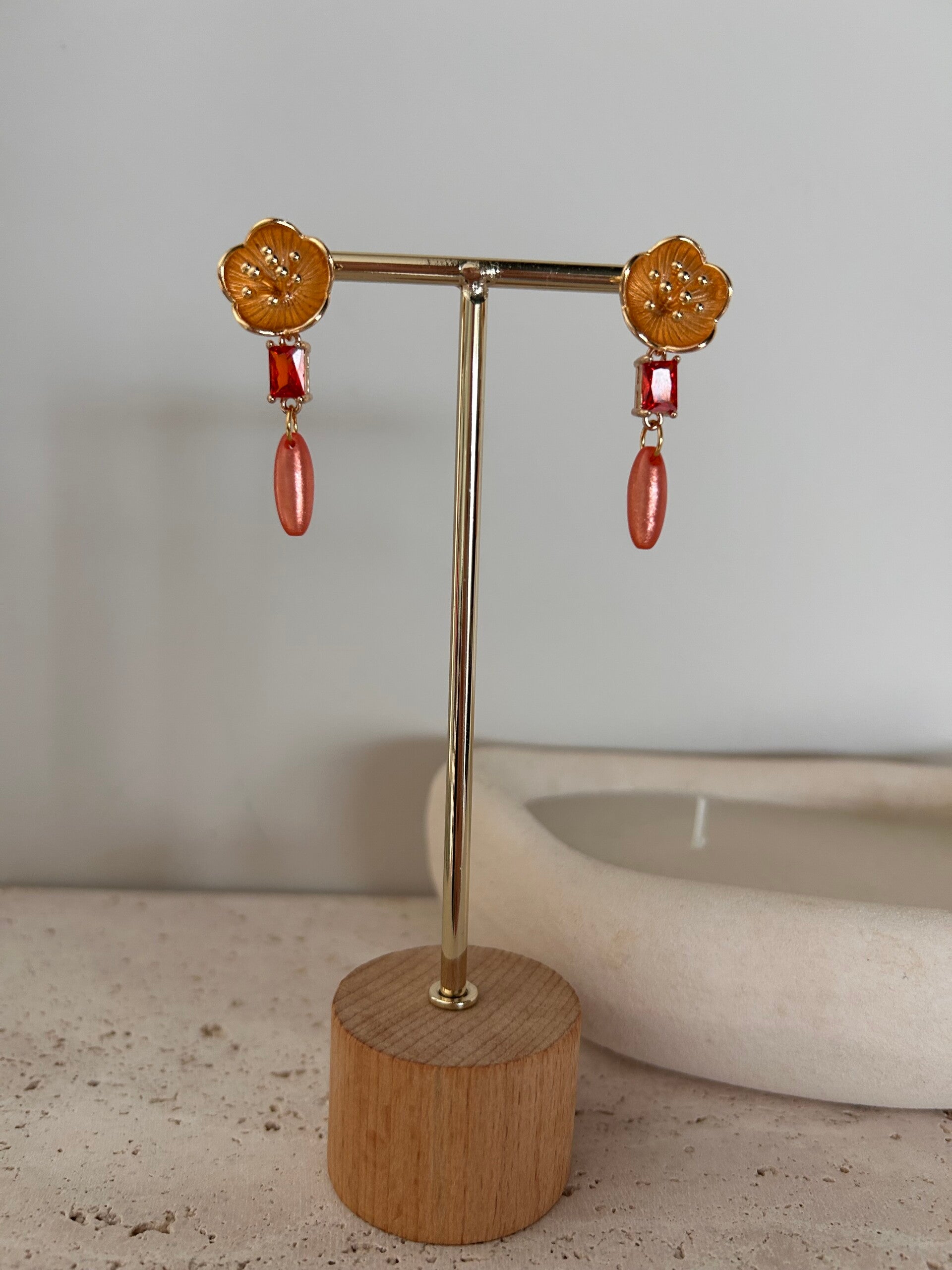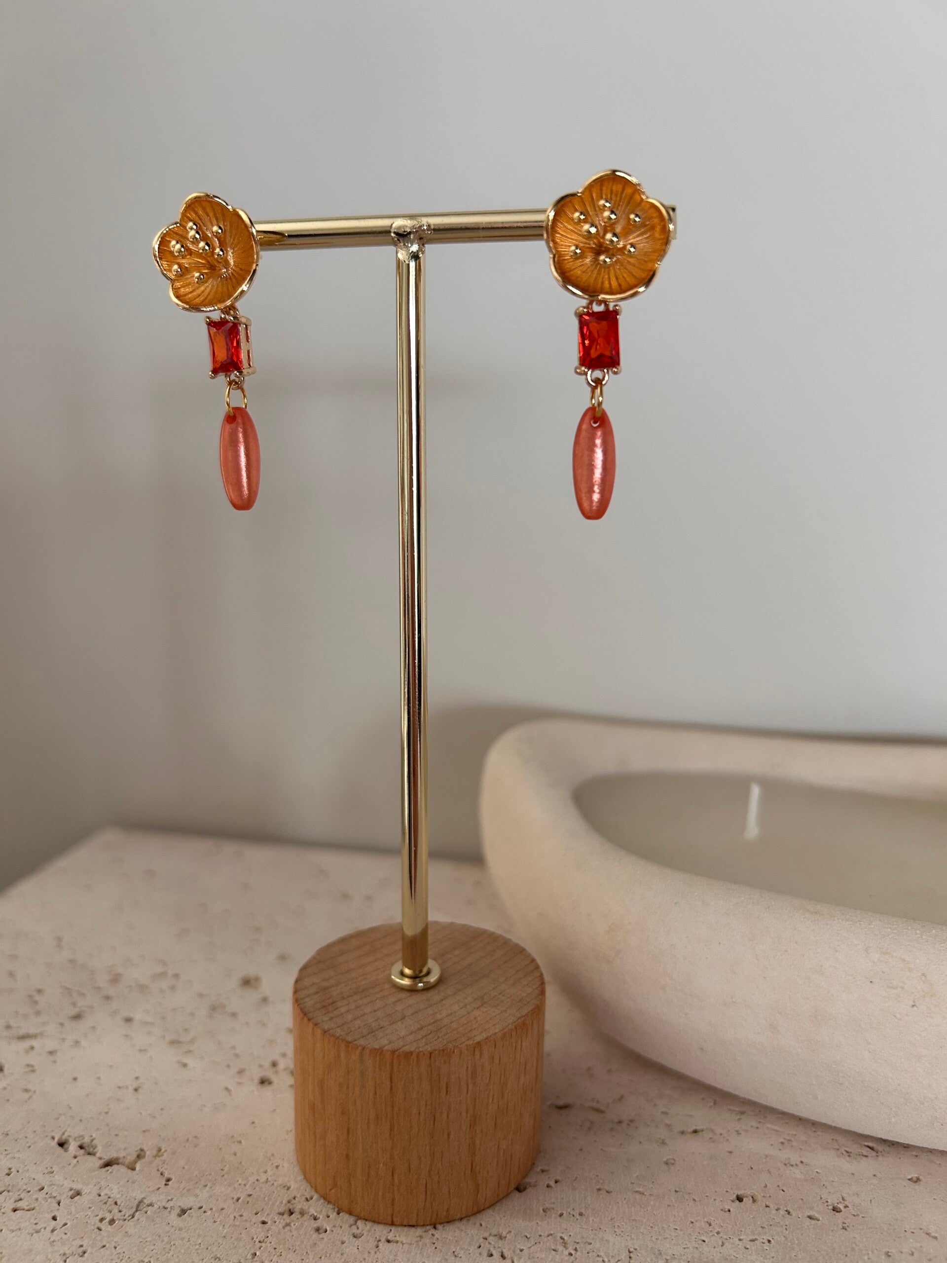 Afgewerkt met goudkleurige kwaliteitsvolle oorstekers verguld met 18K goud.