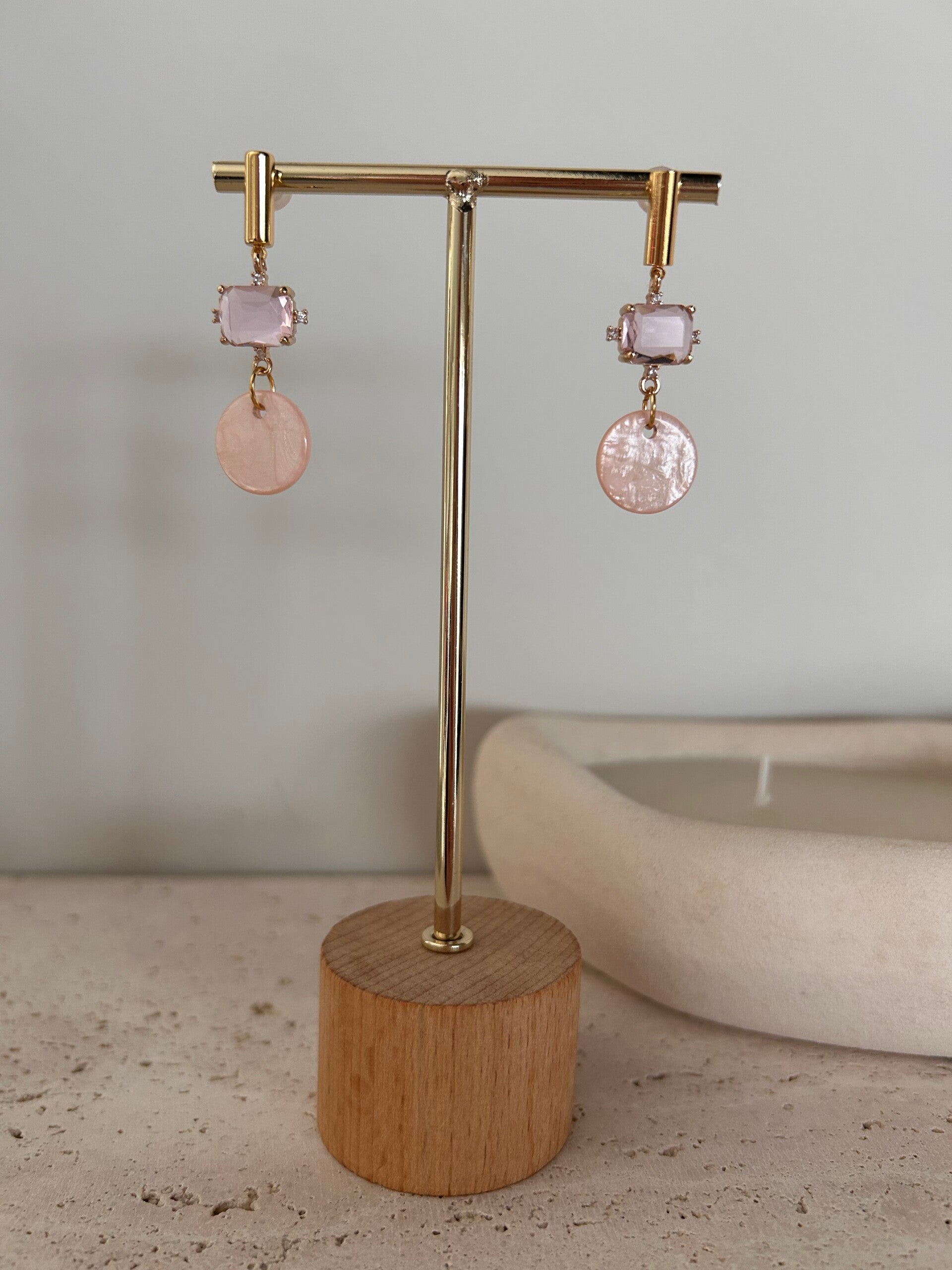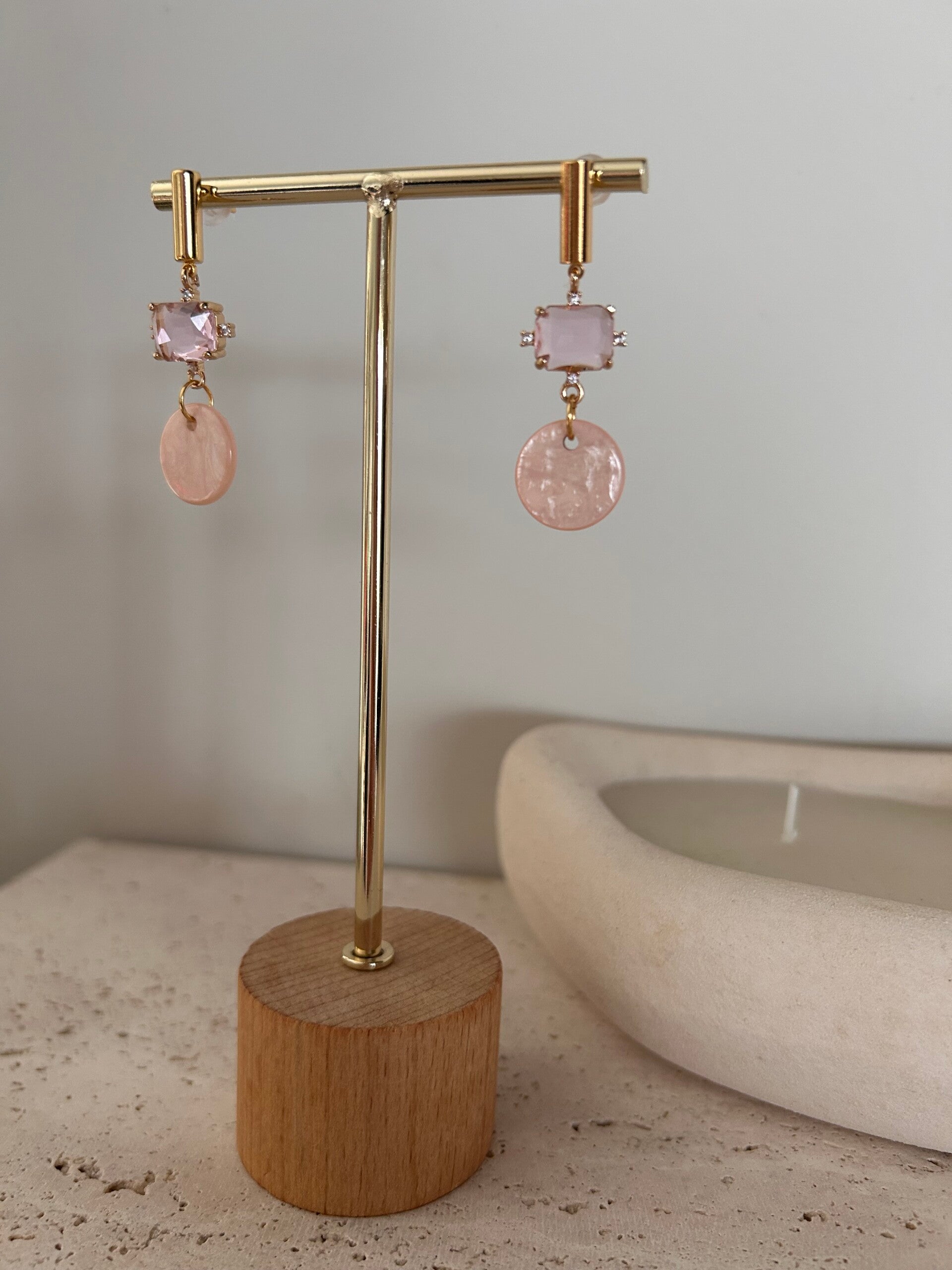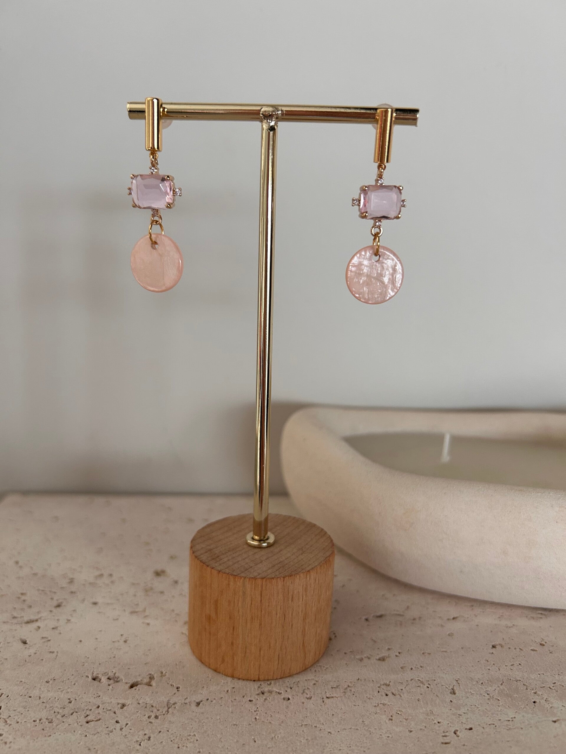 Afgewerkt met goudkleurige kwaliteitsvolle oorstekers verguld met 18K goud.