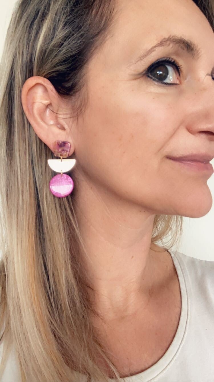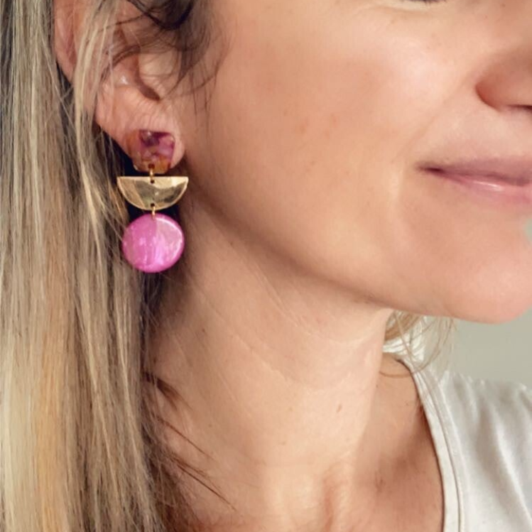 De oorbellen bestaan uit resin, polaris en goudkleurige onderdelen.